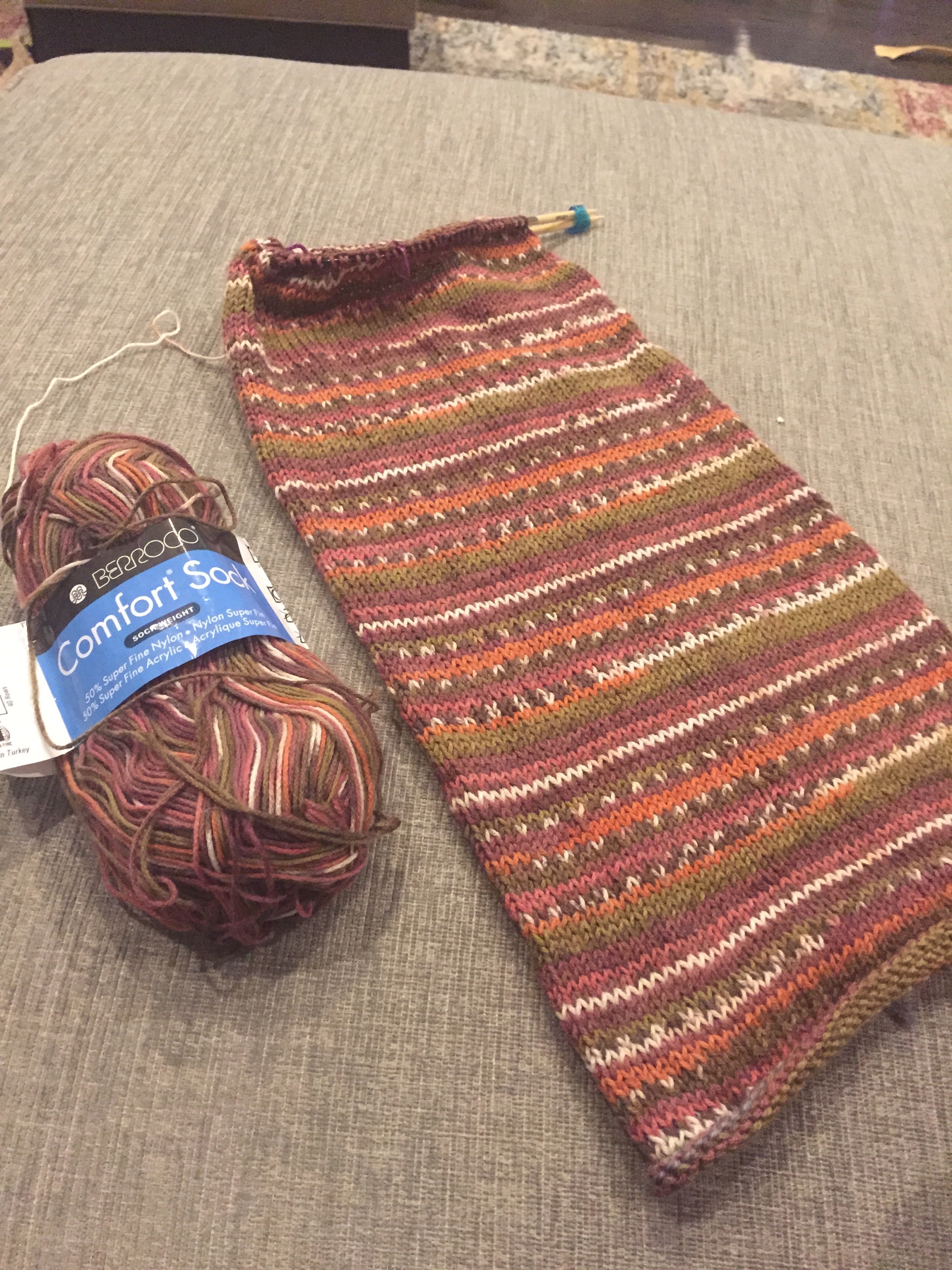 I was pretty excited to finally make something for myself only to find out later that I had made the perfect “Texas Tech” scarf. That’s the problem with living here; you can’t wear red, orange or maroon without aggravating somebody. I’ve never understood this fierce allegiance to the place that took all your money. My main objective while in college was to get out of college…. and get a job…so this pretty will likely go to one of my tech friends.