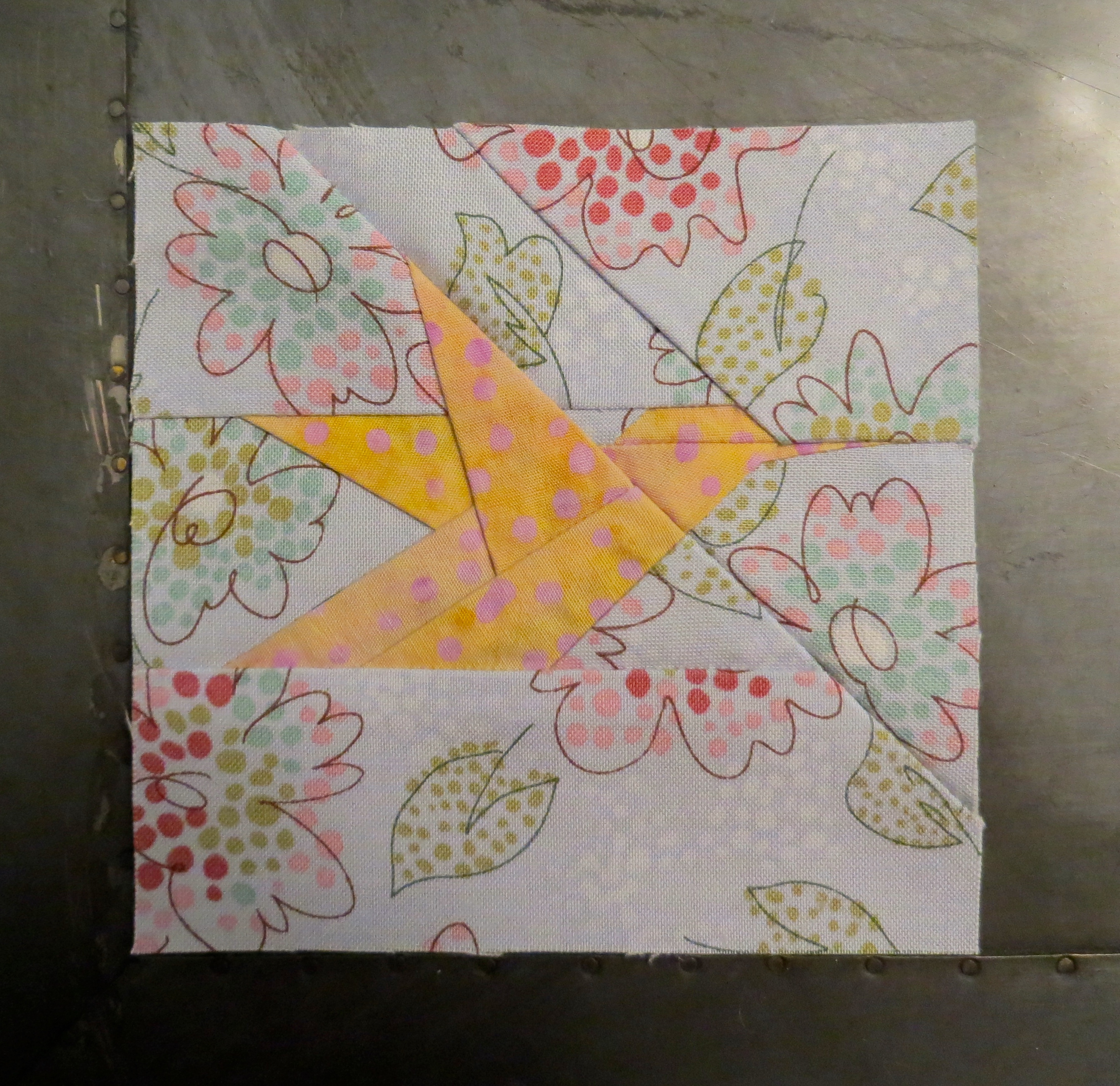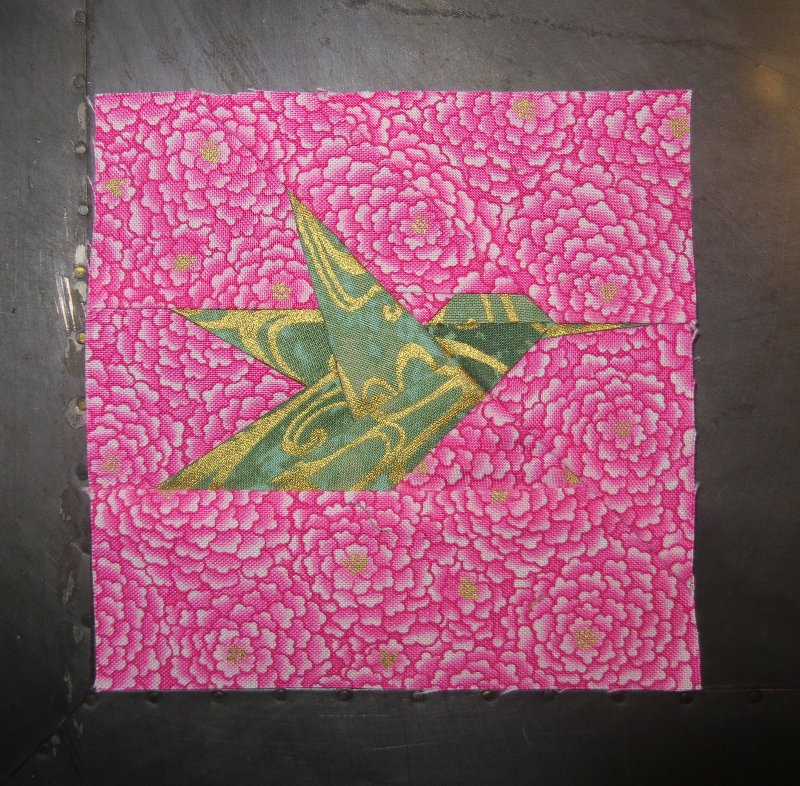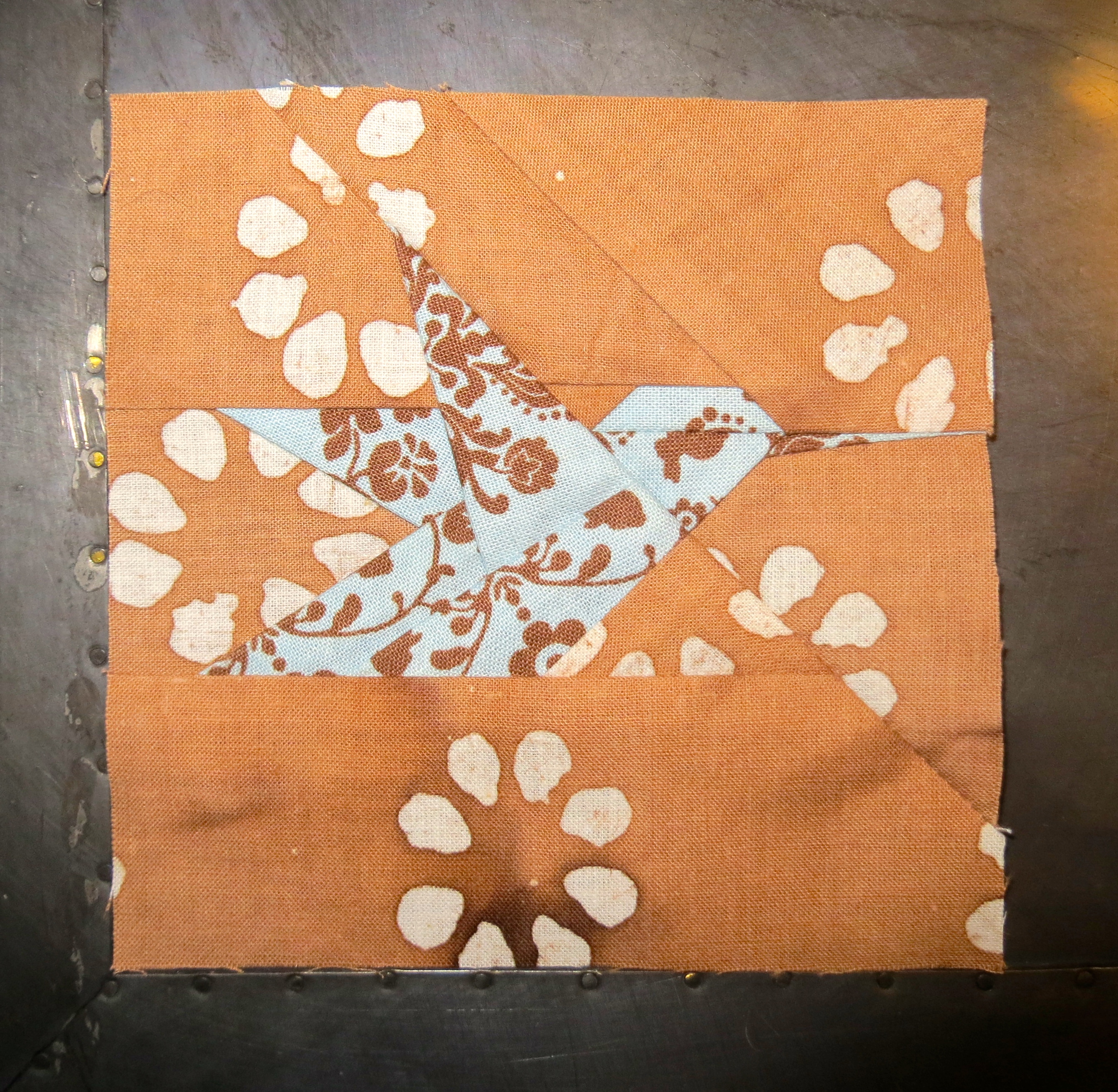 So… I did it again. I am using a test bird. This is the last one that I will use as the other one I have is a fabric repeat. Why am I using a testing bird? Well, I am not feeling well, but despite that, I sat down and made a bird. Then before I sewed the three sections together, I noticed that I had sewn a scrap into a seam in the very middle of the biggest section. I had already pulled the paper off. For those of you who understand paper pricing, you know this was an unrecoverable error. What is frustrating is that it was the second time I did it. I found the first one earlier and was able to fix it. So… keep your workspace clean or you will screw up and be sad. Like me.