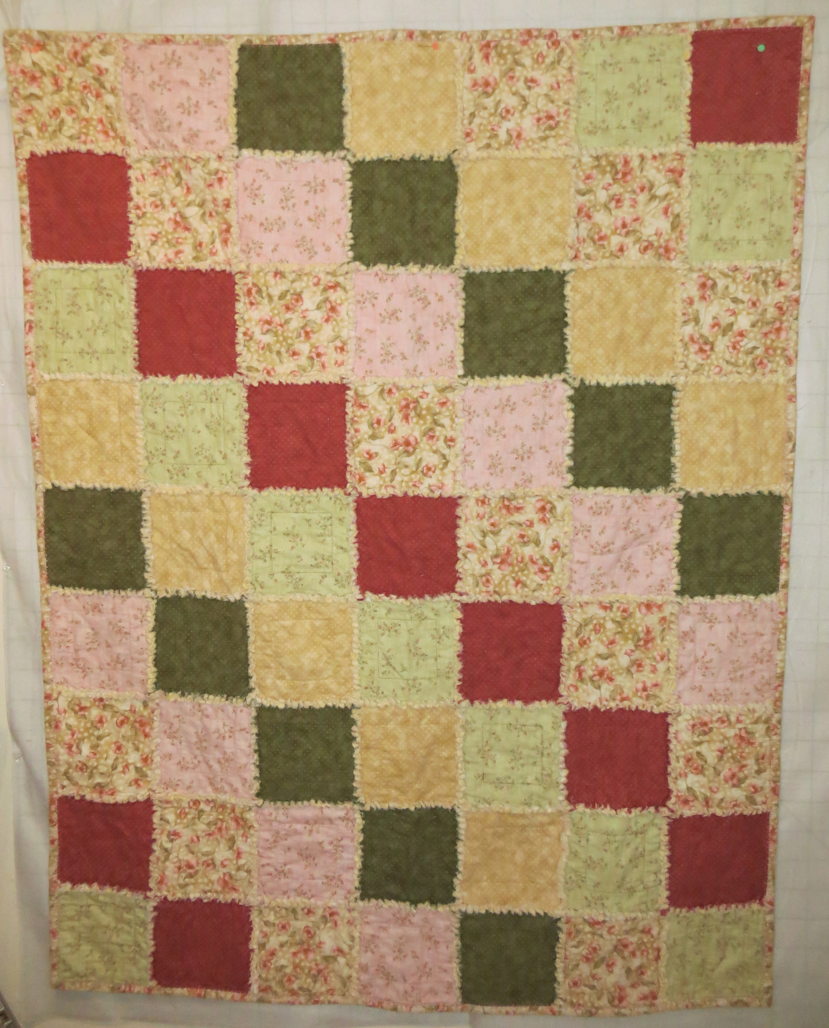 Quilted this rag quilt with a square in the middle of each block instead of the traditional “X”. Christmas 2012
