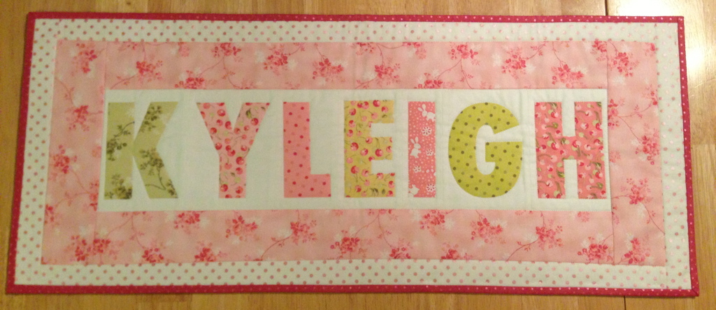 For Kyleigh Published July 8, 2013 at 1024 × 444 For Kyleigh (Obviously) I hoard this pre-printed alphabit fabric. It is out of print and I will be very sad when it runs out. But I wasn’t using the word “hoard” to be overly dramatic. When I kick it, someone is gonna get a lot of girlie letter fabric… 2013